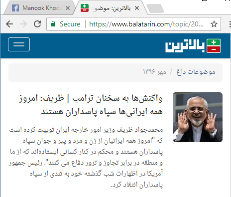 جواد ظریف به ترامپ : من و ما همه تروریستیم!…