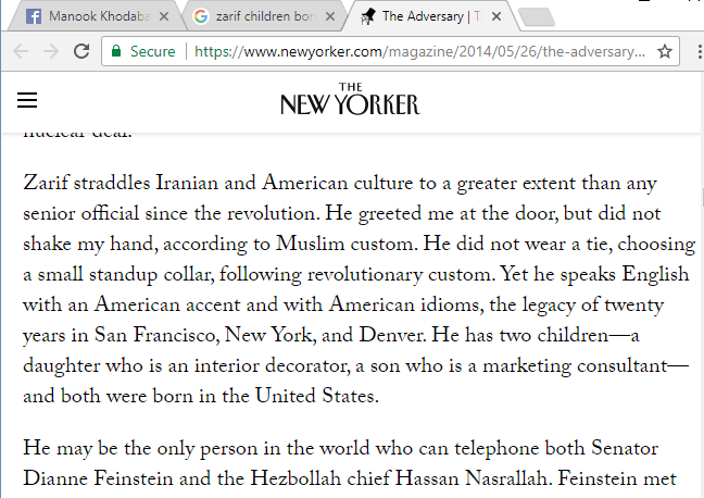 جواد ظریف به ترامپ : من و ما همه تروریستیم!…