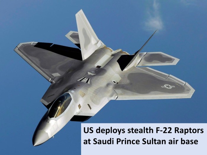 در همراهی با تقویت حضور نظامیش در منطقه، آمریکا جنگنده های مدرن ۱ف-۲۲ اش را در عربستان مستقر کرد.