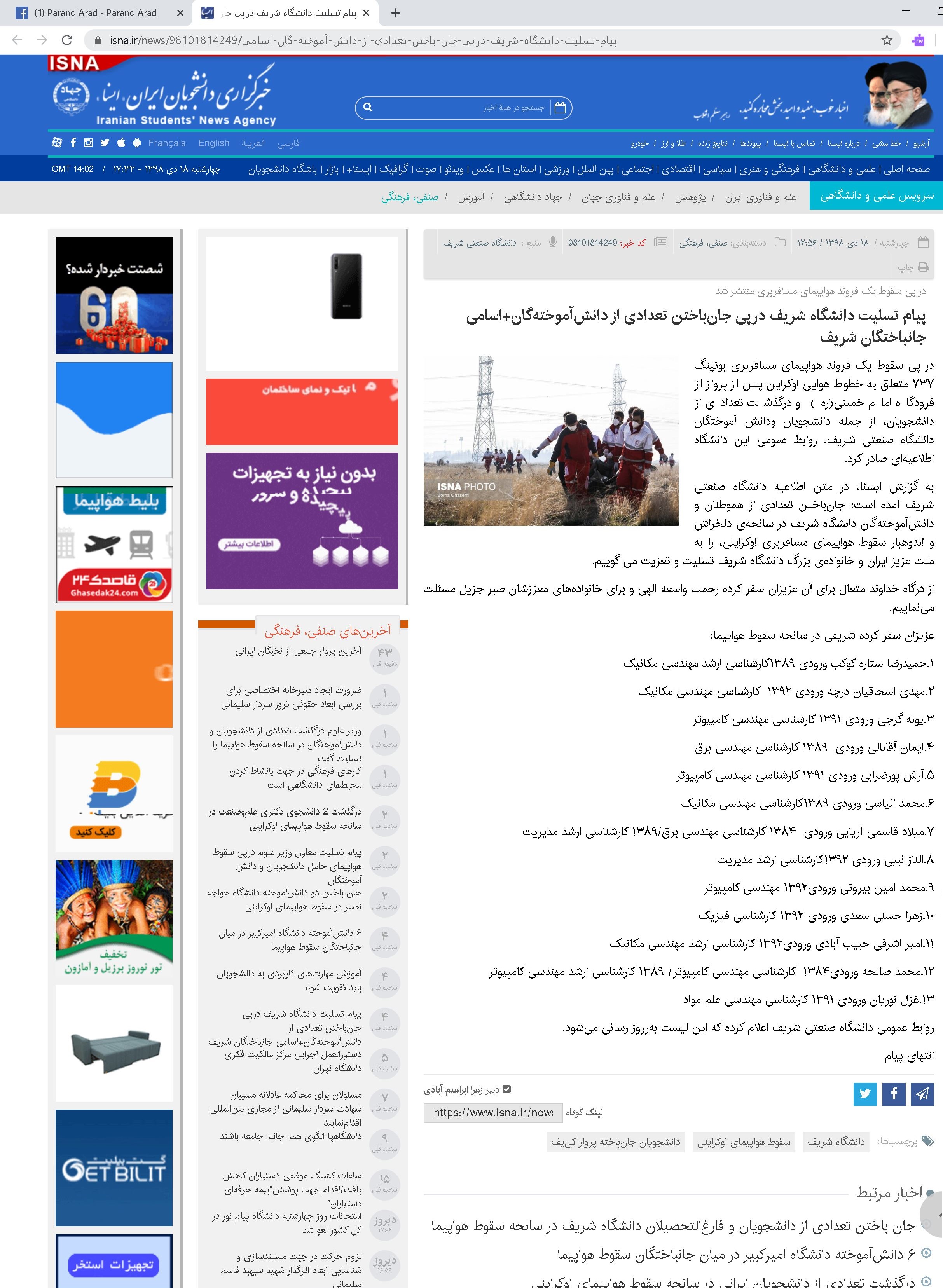 ولی مهم ترین واقعه امروز جان باختن گروهی دانش‌آموختگان وطن مظلوم بی‌سرپرست در آسمانش بود…