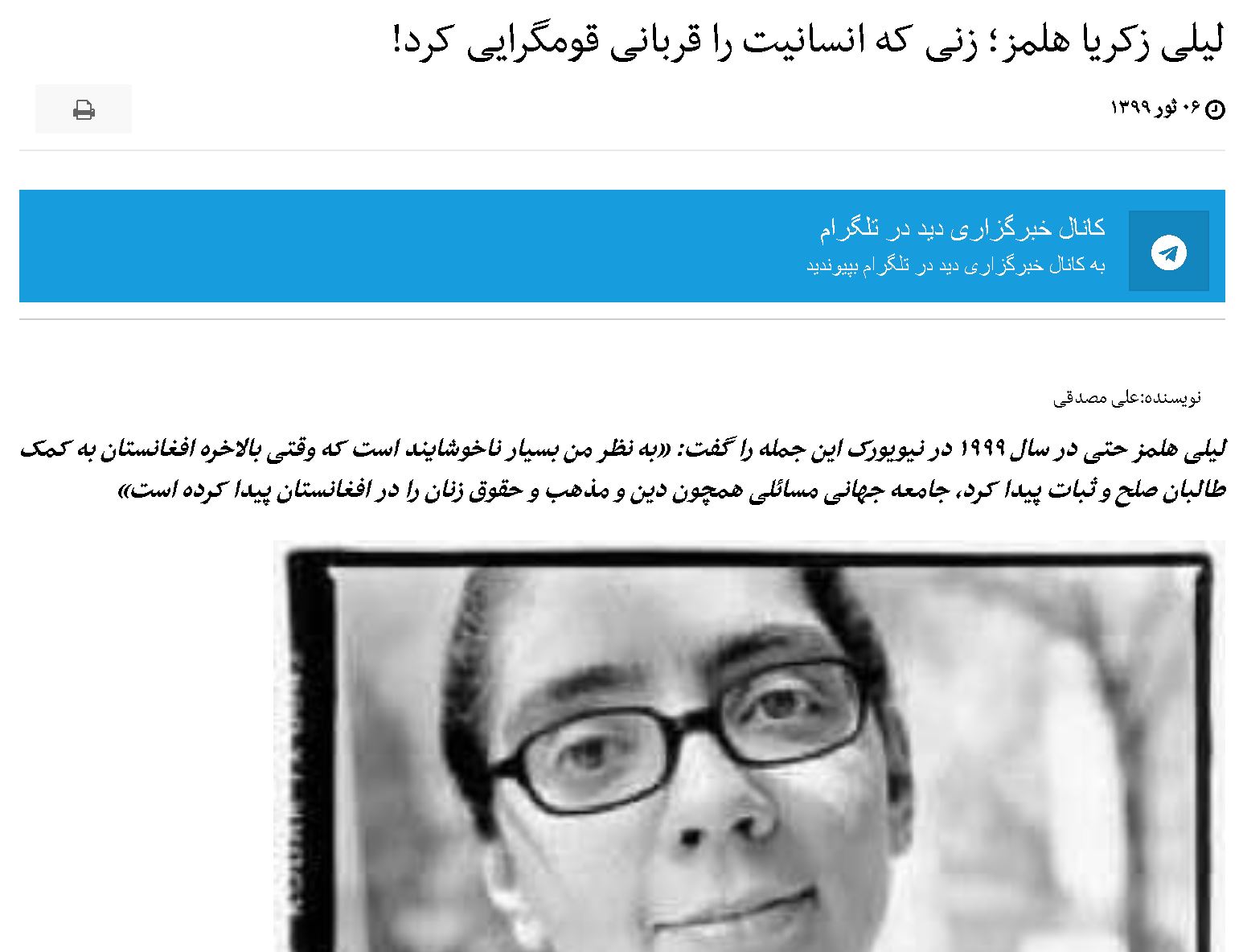 لیلی زکریا هلمز یکی از لابیست های طالبان درآمریکا از سال 2001