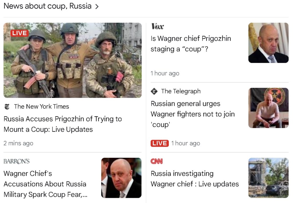 بعد از اظهارات آنچنانی پریگوژین، نیروهای امنیتی گویا رفتهاند که او را دستگیر کنند و البته پریگوژین هم چون سربازان و تسلیحات خودشو داره، لاجرم کار به برخورد مسلحانهدر ناحیه روستوف کشیده که هستند.