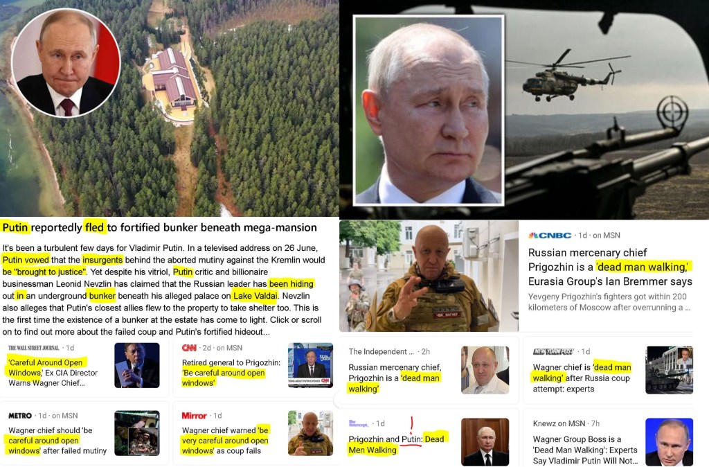 و تایید شد که پوتین وقتی به آغاز شورش پیراشکی یقین حاصل کرد، برداشت در رفت و سه چارتا از یارانش هم دوان دوان به دنبالش، و رفتند به پناه بانکری* در زیر یکی از ویلاهایش که تاکنون کسی از وجود آن خبر نداشت…